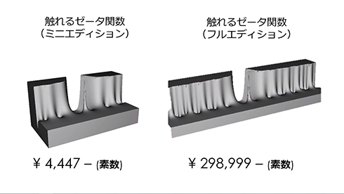 この「触れるゼータ関数」は「DMM.make」というサイトで2種類販売しています。お求めやすいミニエディションは4447円、フルエディションは29万8999円。価格はどちらも素数となっています。