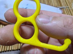 マツモトケイジ(@keizi666)さんが自作したアイテム。2つの輪っかに指を通したら、その下から伸びた軽いフックのような部分にスマホを置くことで、スマホの片手持ちが楽に行えます。これはありそうでなかった便利道具では……?