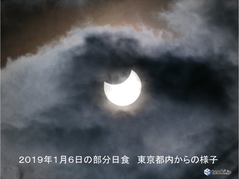 あす12月26日は日本全国で部分日食が起こります。日食(にっしょく)とは、月が太陽の前を横切るために、月によって太陽の一部(または全部)が隠される現象です。太陽の隠され方によって部分食、皆既食、金環食と3種類に分類されます。日本列島で部分日食が見られるのは今年は2回目。前回はおよそ3年ぶりに1月6日に起こり、東京都内からもはっきりと観測することができました。