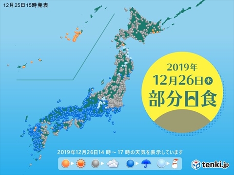 あす12月26日は日本全国で今年2回目の部分日食が起こります。あいにくの天気の所が多いですが、沖縄県など一部では観測のチャンスがあります。