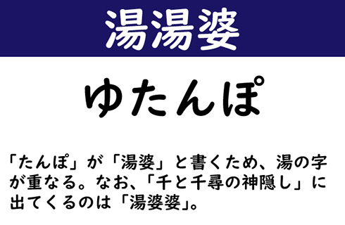 「たんぽ」が「湯婆」と書くため、湯の字が重なる。なお、「千と千尋の神隠し」に出てくるのは「湯婆婆」。