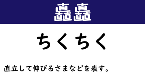 「直」だらけ。「直立して伸びるさま」などを意味する。