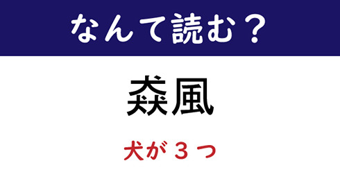 【昨日の問題】この漢字の読み方は?(犬が3つ+風)