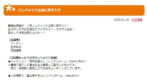 また番組に講師として出演した作家は放送後、普段は2液式レジンを使っているものの、番組の都合上UVレジンを使用したこと、製作の際にはさまざまな工夫をし、仕上げに食品衛生法適合のニスを厚く塗ったことを自身のSNSで報告。番組では一部しか放送されていないので誤解が生じることもあるかもしれないと述べています。