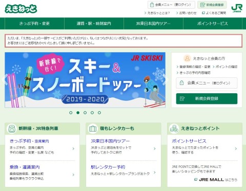 えきねっとにも「一部サービスがご利用いただけない、もしくはつながりにくい状況となっております」とのメッセージ
