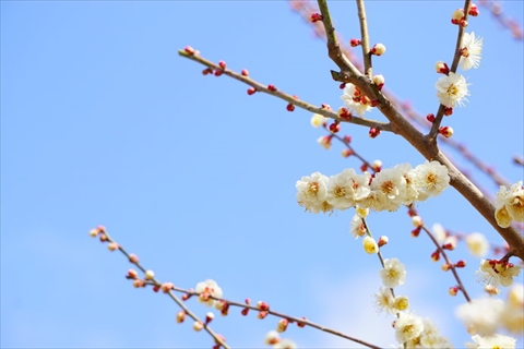 早咲きの梅を一輪一輪探しながら楽しむことを「探梅」、咲きそろった梅を楽しむことを「賞梅」、散りゆく梅を惜しみながら愛でることを「送梅」というそうです。このように、春を待ちわびつつ、段階を踏んで変化を楽しみ観賞するのが梅見のポイントです。