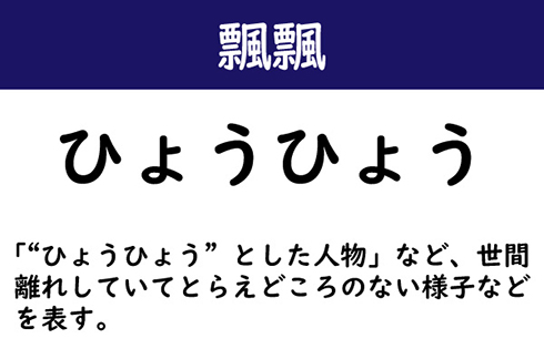 「“ひょうひょう”とした人物」など、世間離れしていてとらえどころのない様子などを表す。