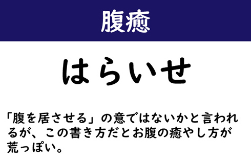 「腹を居させる」の意ではないかと言われるが、この書き方だとお腹の癒やし方が荒っぽい。