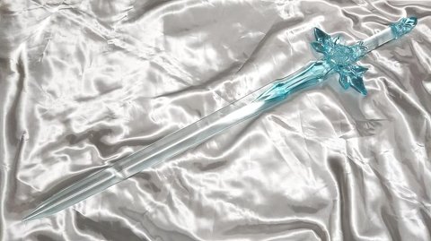 「ソードアート・オンライン アリシゼーション」に登場する武器“青薔薇の剣”がファンの手で顕現。透き通った刀身と淡い青色の装飾が美しいコントラストをたたえています。