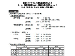 文部科学省は、新型コロナウイルス対策として要請した小中高校臨時休校の実施状況(3月4日8時時点)を発表しました。