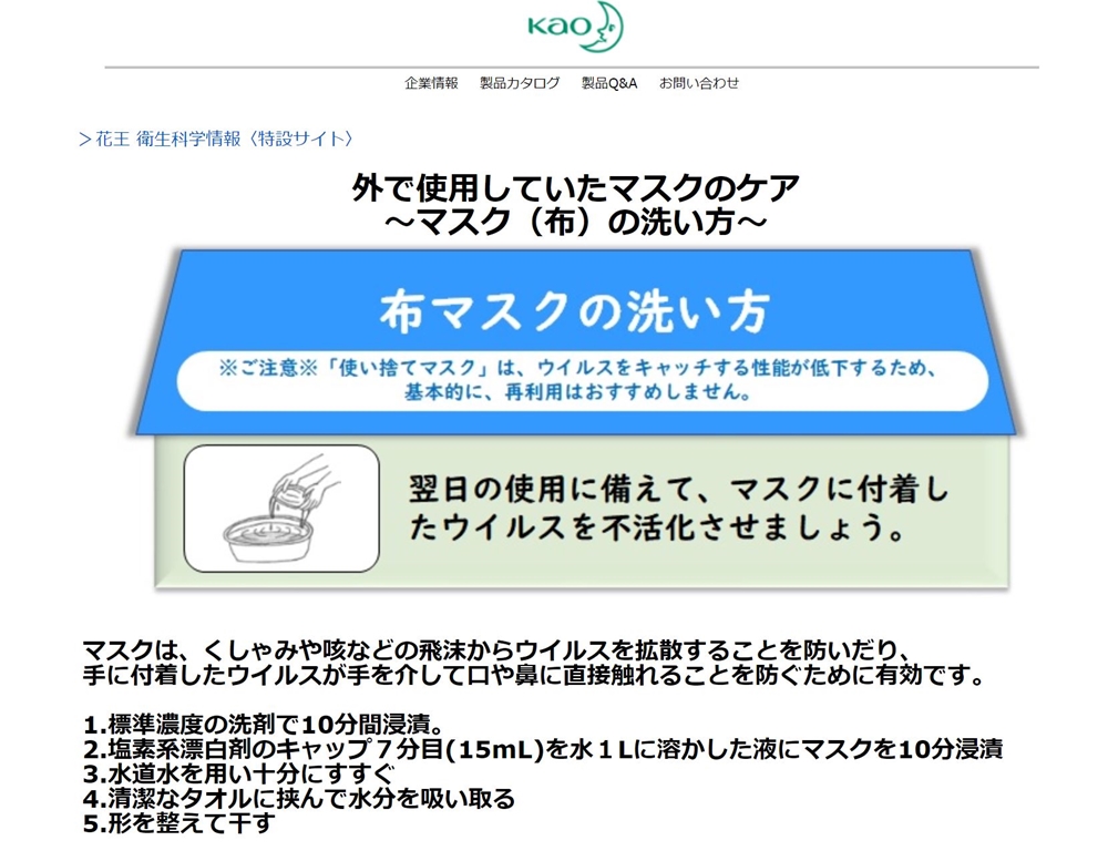 花王が紹介:外で使用していたマスクのケア〜マスク(布)の洗い方〜