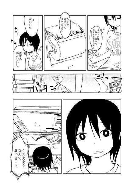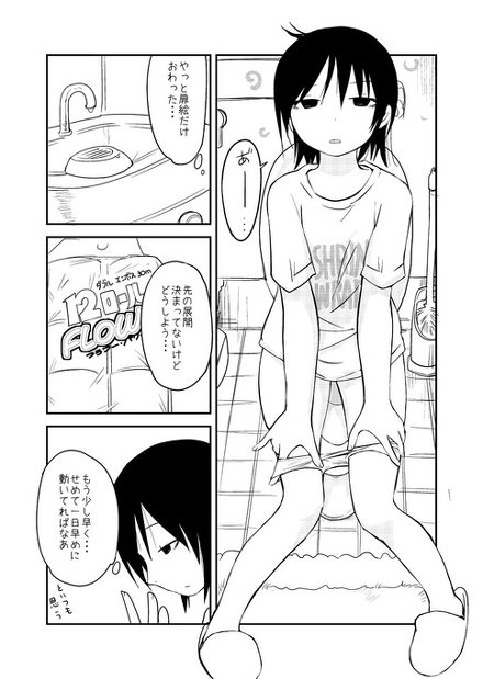 主人公は漫画家の女性。締め切りに追われ、ぼーっとした頭でトイレに入ったため、トイレットペーパーを前後逆向きで補充してしまいます。「直すのもめんどいし」と、そのまま紙を使用してトイレを後に。