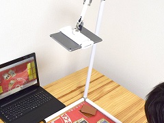プレイマット全体を撮影できるよう高い位置にスマホ・タブレットを固定できるのが特長。このスタンドを使えば、約70センチの高さから机を撮影できる他、スタンドの足に角度をもたせ撮影の邪魔にもなりません。遠く離れた友人とオンラインでカードゲームができます。