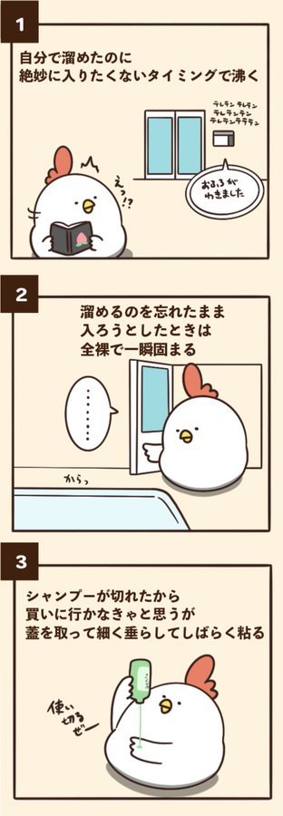 ゆる〜い鳥のキャラクターが「あるあるネタ」を展開する漫画アカウント・毎日でぶどり(@debu_dori)をご存じでしょうか? わかりみしかない投稿の中から「大学生にありがちなこと/お風呂でありがちなこと」の2本をご紹介します。