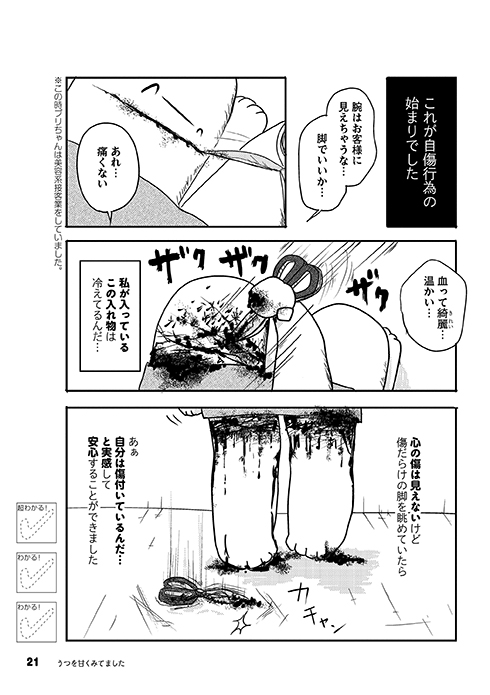 『うつ甘』担当編集者(以下、担当編集):痛そうだから、どうしてそういう行動を選ぶのか理解するのが難しいと思う。