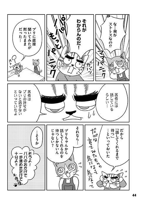 ブリ猫。:でも、「お前はやってないんだよ。だから、やれよ」という意味の「頑張れ」は……。旦那さんの浮気が原因で離婚するとき、向こうの家族から「あなたの努力が足りない部分もある。病気になったからといって、そこは“頑張って”もらわないと」というようなことを言われたのはキツかったですね。