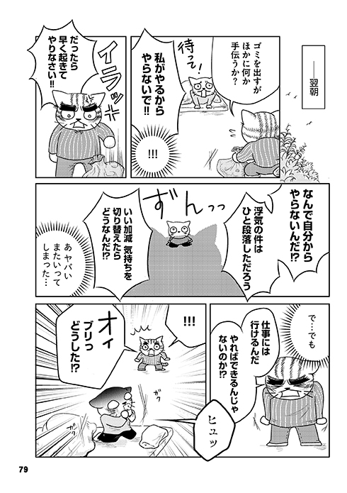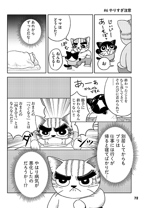 ―― 両作の違いで印象的なのは、ブリ猫。さんの夫(のち離婚)の描かれ方でしょうか。1作目『うつ甘』では“双極性障害に対する理解のない悪役”のような印象を受ける一方、2作目『家族もうつ甘』では「彼(夫)には彼の葛藤があった」とむしろ認めるようなコラムもあって