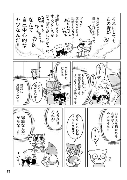 ブリ猫。:こういう父のおかげで、私も「離れていく人がいても仕方がない」と思えるようになりましたね。「逃げ場を持った方が良い」とよく言いますが、残念ながら必ずしも持てるわけではなくて。父はたまたま一緒にいてくれましたが、夫のようにそれが難しかった人もいる。