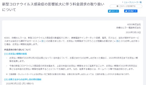 KDDIソフトバンクジュピターテレコムも同様に、申し出があれば支払期限を延長するとしています。問い合わせ先など詳細は各社のWebサイトで確認できます。