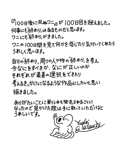 きくちゆうきさんがSNS上で連載していた漫画「100日後に死ぬワニ」の書籍化と映画化が発表されました。