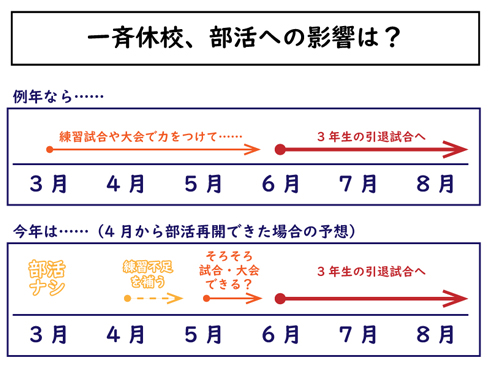 ―― 休校が続くと、授業にも部活にも影響が出そうだね。学校を再開する場合は、どういう対策をするの?