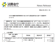 消費者庁、EMS機器販売業者に措置命令 合理的根拠認められず
