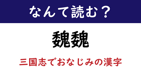 【前回の問題】「魏魏」の読み方は?(三国志でおなじみの漢字)