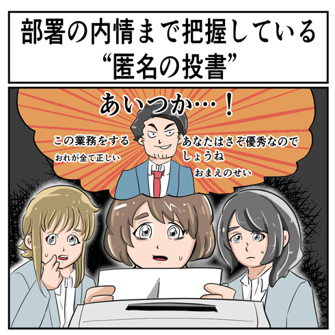 ですが、「この業務内容が悪い」ではなく「この業務内容が悪いのはお前が担当しているからだ」という風に個人攻撃する投書が不定期に送られるようになって。