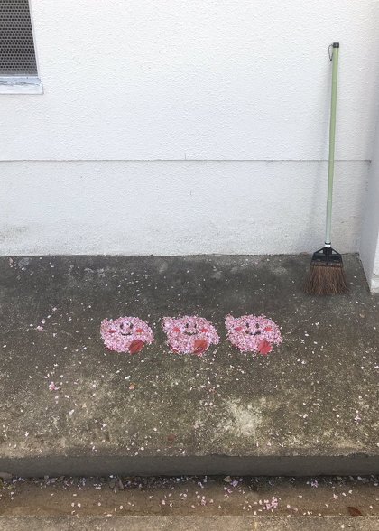 「人通りのない体育館裏にたくさんの花びらを見つけて、数日前からそわそわしてました」とはまーさん。また、新型コロナウイルスで社会全体が疲弊するなかで「何か少しでもほっこりできるものを作れないかなぁ」という思いもあったそうです。