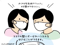 筒状の構造になっており、間にガーゼやハンカチをはさんで使うよう同社は推奨。着用後は洗濯して繰り返し使えます。