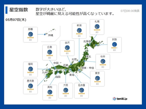 7日は満月で、5月の満月はフラワームーンと呼ばれます。気になる今夜の天気は全国的に晴れて、満月を眺めるチャンス。ぜひ、家の窓やベランダなどから、夜空を見上げてみて下さい。