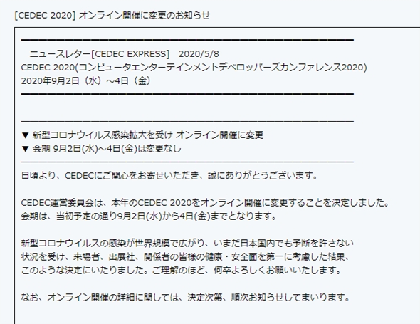 「CEDEC 2020」もオンライン開催に