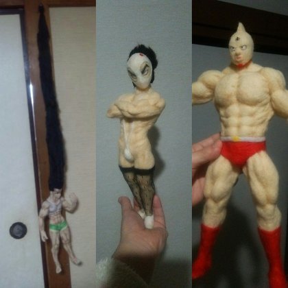 羊毛フェルトが趣味だという上田さんのTwitterには、過去の作品も多数投稿されています。「普段はかわいいものを作ってますよ!!」と上田さん。ツイートに添付された画像はゴンさんに変態仮面にザンギエフ……。か、かわ……いい……?