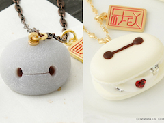 「大福」シリーズでは、ベイマックスの顔を大福に見立てました。さわるともっちりしていそうな本物そっくりの大福のアクセサリーは、中に入ったこし餡がうっすらと透けて見えるとことがとってもリアル! 物語の舞台「サンフランソウキョウ」の和洋折衷な世界観を感じるロゴプレートもポイントになっています。こちらのシリーズは、ネックレス(9500円/税別、以下同)、リング(6000円)、バッグチャーム(7500円)の3型がリリースされます。