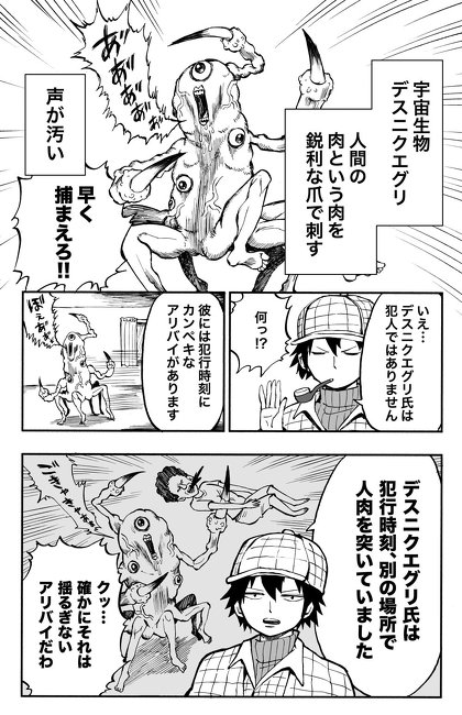 探偵vs犯人vs宇宙生物デスニクエグリ 不条理すぎる推理漫画にツッコミが追い付かない