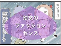 見かねたエェコさんは「ちょっと…違う服にしようよ」と提案しますが、ナナちゃんは「いやだ! これがいい!」とその場から逃亡。エェコさんは「これが幼児女子の『とんでもファッション時期』か!」と涙を流すのでした。