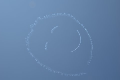 青空に突然現れたニコニコ顔マーク 曲芸飛行世界チャンピオンが福島上空で笑顔をプレゼント