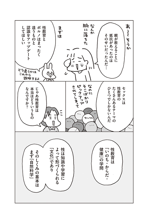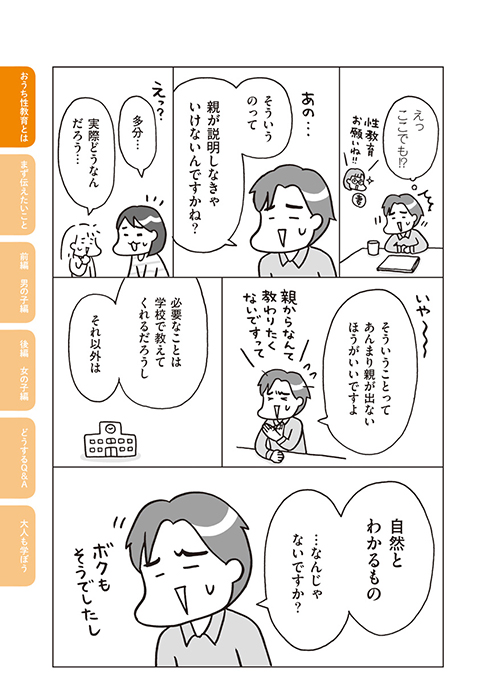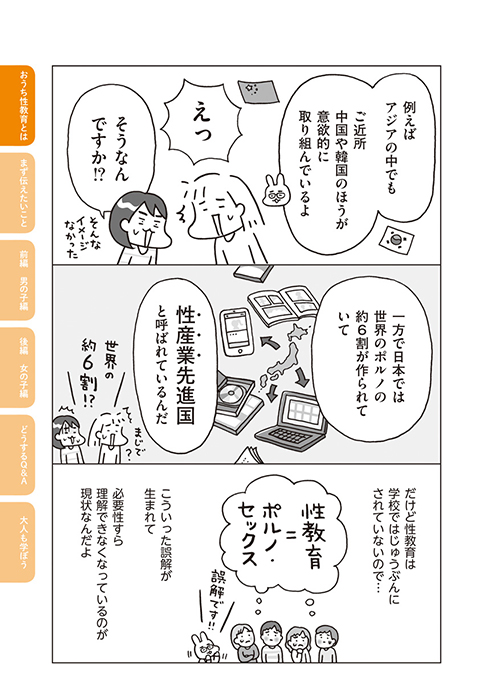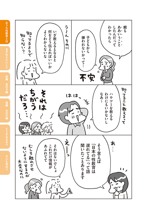 “教える側の大人さえしっかり性教育を受けていない”という現状を踏まえて制作されたハウツーマンガ。