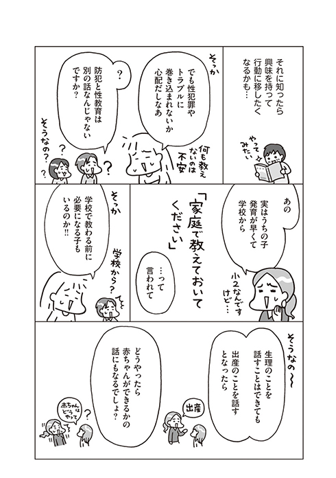 私の場合は、娘が小学4年生になり心身が大人に成長していく時期に入ったころ、他の保護者と「そろそろ性教育しないとね」という話になって、そういった難しさに気が付きました。母親である私自身も体の変化、身の守り方などについて教えられるほどの知識を持っていませんでしたし、それをネットで調べることにすらすごく抵抗感があったんです。