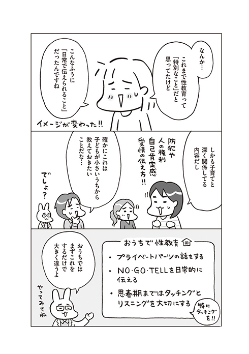 あと、これは子どもではなく大人側の話なのですが、性教育を学んだことで私は心が軽くなりました。同じことを言っている人はけっこういますね。