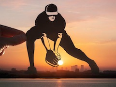 切り絵によって夕日が大リーガーのキャッチするボールに!