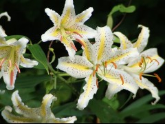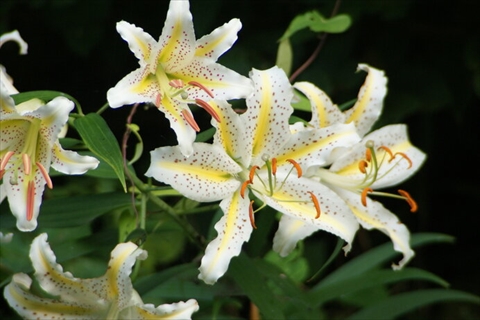 西洋では日本産のユリから、次々に美しい園芸品種が生み出されています。スカシユリとオニユリ(鬼百合 Lilium lancifolium)から鮮やかな紅色のアジアティック・ハイブリッド、カノコユリとヤマユリ、ヒメサユリの交雑からは、カサブランカなどの品種で有名な、豪華絢爛なオリエンタル・ハイブリッド、テッポウユリとスカシユリの交雑から花色も姿も豊富で明るいLAハイブリッドと、世界のユリの園芸産業は、日本産ユリを基にして、一気に「花開いた」のです。これらの花が日本のユリを基にして作られたのは誇らしい反面、そのために全国からユリが掘りつくされ、今や絶滅危惧種が多くなってしまったことは、やはり残念に感じます。