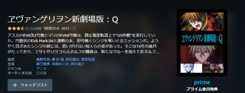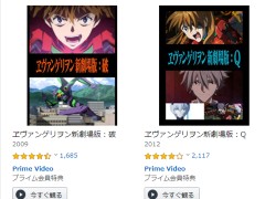 「ヱヴァンゲリヲン新劇場版」序・破・QがAmazonで見放題に