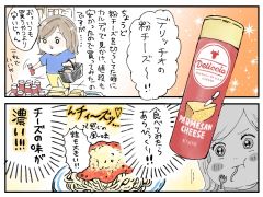 それは「デリッチオ」の粉チーズ。赤いパッケージにナイフが添えられたチーズのイラストが目を引く、アメリカ産のパルメザンチーズを使った粉チーズです。カルディ公式サイトによれば価格は328円(税込)で、粉チーズとしてはお安い印象です。ミツコさんは何気なくデリッチオの粉チーズを購入し、そのチーズの味の濃さと粒の大きさに魅了されたそうです。これは食べてみたい……!