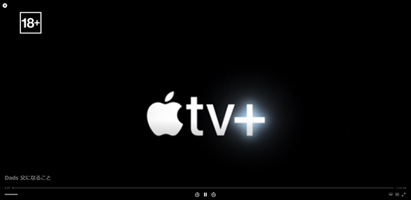 別の作品で確認したところ映倫マークは表示されず。代わりに左上に独自レーティングと思しき表示がされました(Apple TV+「Dads 父になること」再生画面より)