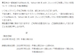 ソフトバンクは7月31日に、SoftBank光などで利用しづらい状況が断続的に発生していると報告しました。