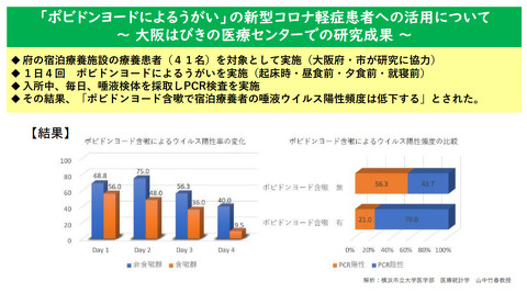 8月4日、大阪府の吉村知事は「うがい薬に含まれる『ポビドンヨード』がPCR検査における新型コロナウイルスの陽性頻度を低下させた」とする研究を提示し、感染拡大防止策として府民に対し「イソジン」など市販薬の使用を呼びかけました。