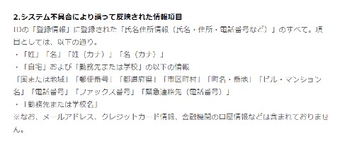 影響を受けた可能性があるIDは最大約39万件に上り、誤って反映された登録情報は、氏名、自宅・勤務先または学校の住所、電話番号、勤務先または学校名。メールアドレス、クレジットカード情報、金融機関の口座情報などは含まれていないとしています。