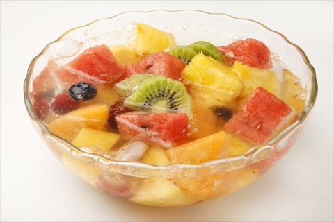 種を取ったスイカを一口大に切って冷凍。そのままフルーツポンチに
