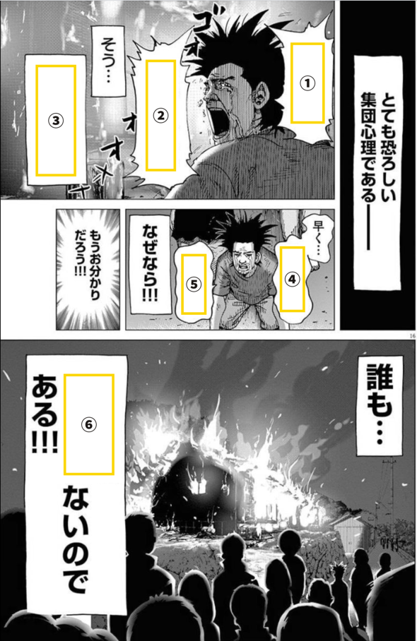 「誰も…消防車を呼んでいないのである!」とは、『しあわせアフロ田中』4巻に収録された一幕。主人公・田中の暮らす家が火事になり、仲間たちや近隣住人が「消防車はまだか」と大騒ぎするが、実はその中の誰も119番通報していなかった――という「傍観者効果」を皮肉ったエピソードです(試し読み)。